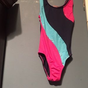 Just imagine leotard size 8 youths colors blue pink and navy blue star hems through out the Leo no snags or rips worn but not bad🌻