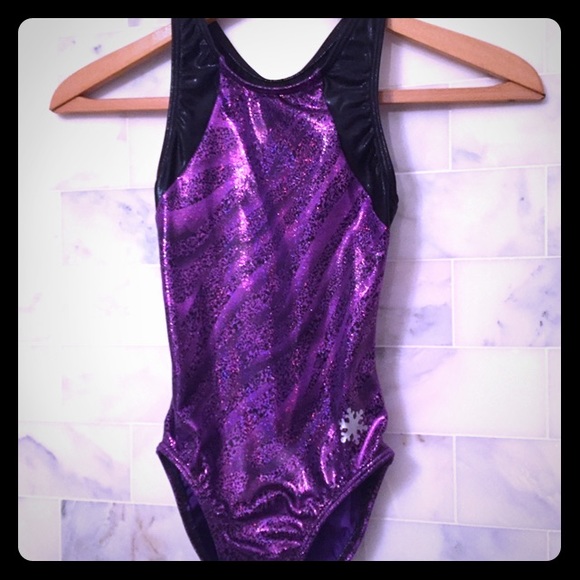 Ultimate Gymnastics Leotard. Purple sparkle with black high sheen accents. Like new, bought too small. High quality dancewear purchased direct at dance studio. Best brand in gym wear. 90% nylon/poly and 10% Lycra **this Child’s Large size will fit age 6/7 years up to a petite 8/9 year old.