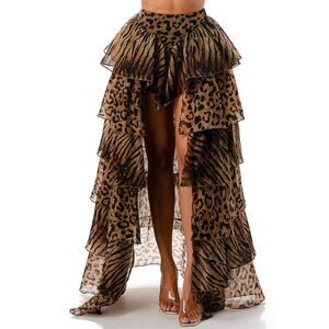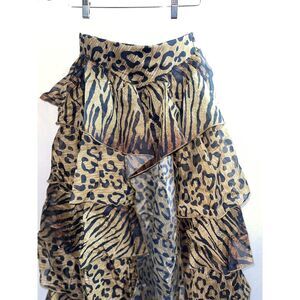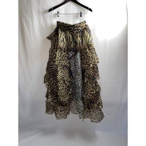 High waisted skirt Elastic waistband Undergarment attached Tulle layers Slit Side zipper closure 100% polyester Dry clean only Model is wearing a small