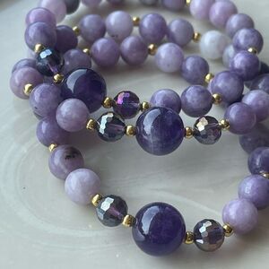 Lepidolite amethyst bracelet crystal stone stretch one bracelet new handmade