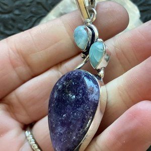 Lepidolite and Larimar Stone Crystal Jewelry Pendant