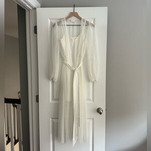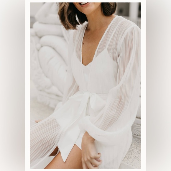 Pleated maxi bridal robe with slip worn one time