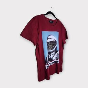 Les Benjamins Don’t Panic Astronaut Graphic T-Shirt Red Blue Men’s Medium