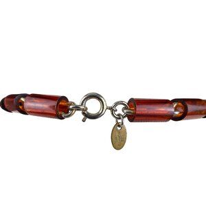 Les Bernard Womens Amber Plastic Bead Necklace Gold Tone Barrel Clasp Vintage