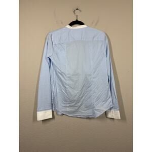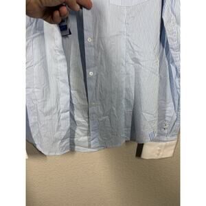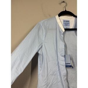 New Les Canebiers Size Large Flat Collared Button Up Shirt Sky Blue Striped Cotton Blend Long Sleeves Stretch