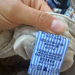 Pre owned excellent condition worn a handful of times. Super nice 100% cotton slim fit khaki pants. Mens size medium. Please refer to measurements/