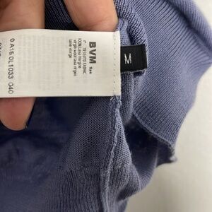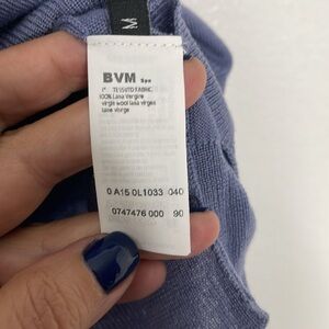 Les Copains Blue V Neck 100% Virgin Wool Dolman Short Sleeve Sweater Medium