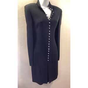 Les Copains Couture Black Evening Rhinestone Buttons Crepe Cocktail Dress 42