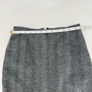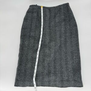 Refined elegance with subtle texture — this Les Copains skirt showcases a classic herringbone weave in tonal black & gray. Tailored from a wool/mohair blend with a smooth lining and comfortable back zipper with hook-and-eye closure, this midi-length pencil skirt is both professional and timeless. It’s in great pre-loved condition with no holes or stains.