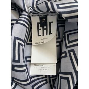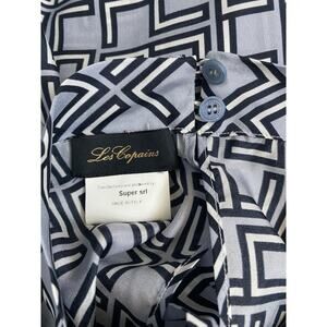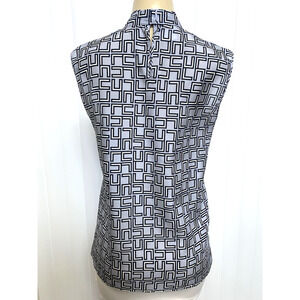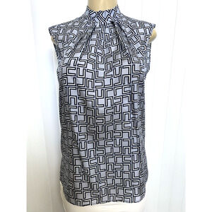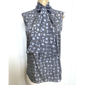 Les Copains Silk Top Blouse Geometric Sleeveless Neck Tie Gray Blue 42 4 6 S
