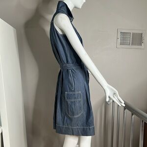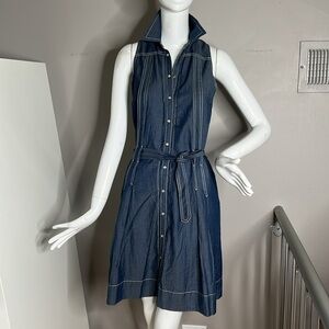 This is a beautiful Les Copains Sz 36 Sleevles Snap Front Tie Front Dress.