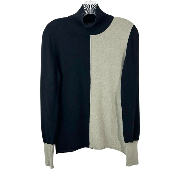 Les Copains Virgin Wool & Cashmere Color Block Mock Neck Sweater sz 42 or Small