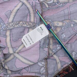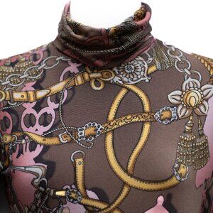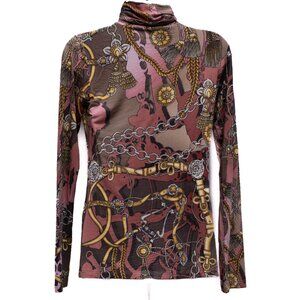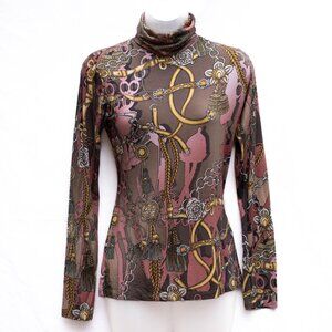 Les Copains Women M Turtleneck Pullover Belt Chain Tassel Print Equestrian Italy