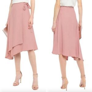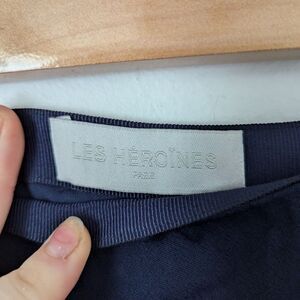 Les Heroines Paris navy blue satin crepe asymmetrical Maya wrap midi skirt