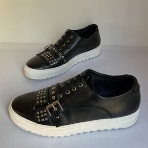 Les Hommes Black Leather Studded Buckle Sneakers Men’s Size 42/ 9 US Italian Designer