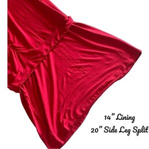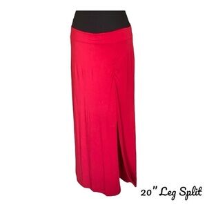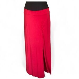 Les Lunes Paris Drop Waist Low Rise Maxi Skirt with 20”Walking Split Red M/L