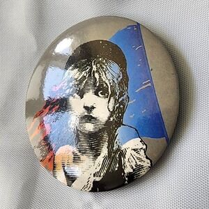 Keywords: Les Miserables, Gavroche, Button Badge, Pinback, Vintage, Collectible, Made in England, Literary, Musical, Theater, Retro, 80s, Novel, Character