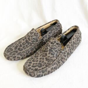 Les Mocassins Tropeziens taupe brown leopard print suede moccasin slip ons. Rounded toe. Loafer style. Size 38 or US 7.5. Excellent preowned condition. Very little wear. Box and / or dust bag are not included. Made in Portugal.