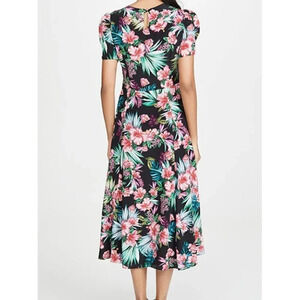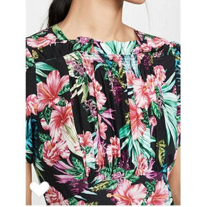 Les Reveries Hibiscus Floral Smocked Silk Midi Dress Women's 0