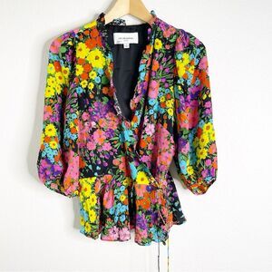 Les Reveries Puff Sleeve Wrap Top Floral Multi Color Rent The Runway Small