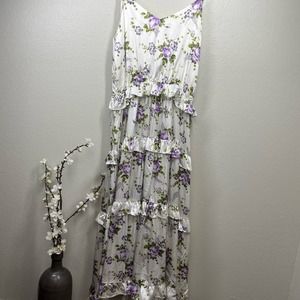 Les Reveries Silk Ruffle-Trimmed Tiered Floral Print Maxi Dress Size 6. Relaxed fit, adjustable straps, V-neckline, beautiful floral print, perfect for petite frame.