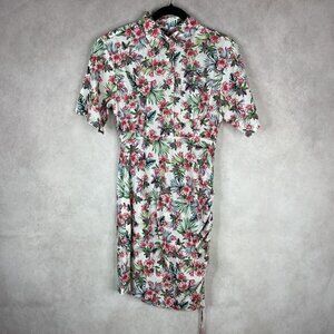 Les Reveries White Floral Collared Button Side Cinch Floral Dress Women's Size 0