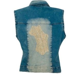 Les Rivales Lace Distressed Light Wash Denim Zip Up Jean Vest Size 40/US Size M