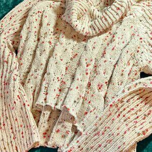 Beautiful Les Serein chunky knit cowlneck sweater in a speckled cream/ivory color with red flecks.