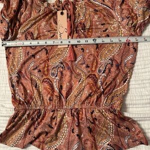 Cute paisley print. Elasticized waist. Tie in front.