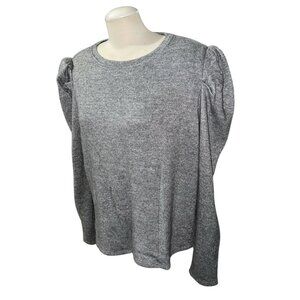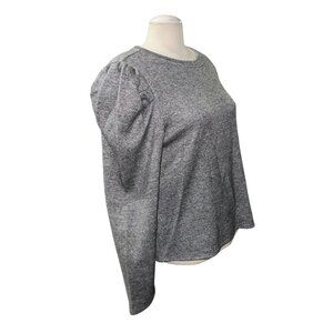 Les Serein Silver Puff Sleeve Sweater Womens Sz XXL Lightweight Rayon Blend Crew