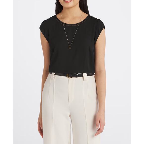 Les Serein Tara Lattice Trim Blouse – Black, XL, StitchFix, NWT