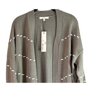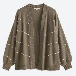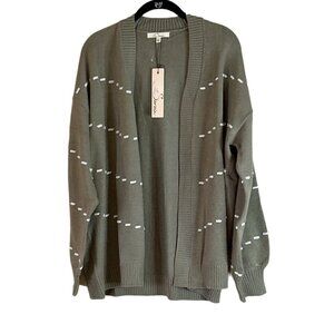 Les Serein Women's Petunia Cardigan Olive Ribbed Open Front Size L NWT