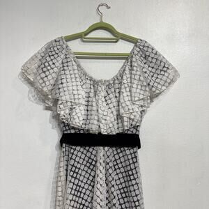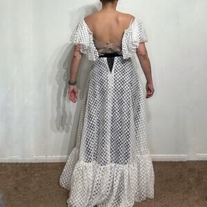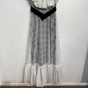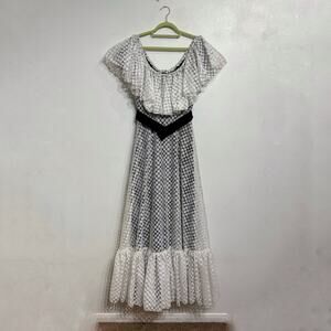Les Wilk White Lace Ruffle Overlay Velvet Belted 70's Maxi Dress Sz M