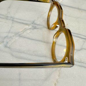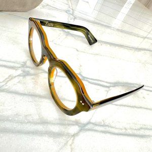 If youre looking at this then you know quality handmade eyewear .. these are limited edition LESCA eyeglasses handmade made in France , the model is Toro size XL .. they are 47-24 the color of the acetate is gorgeous green/ khaki with the front being slightly darker than the inside with the classic Panto shape..