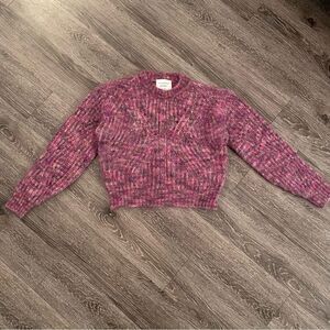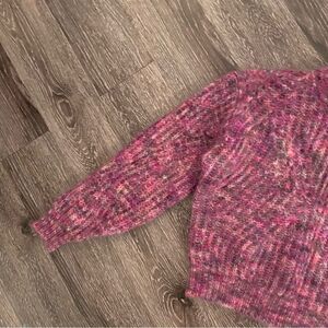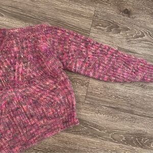 This yummy sweater is made in a gorgeous multi-color melange. The super-soft kid mohair yarn comes from Italian mill Aurora. Features knit details in the shape of "V" on front and back.