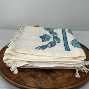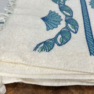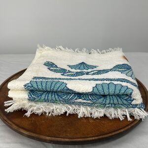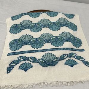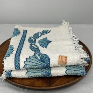 Leshner Vintage Bath Towels New Old Stock White Blue Fringe Seashells