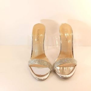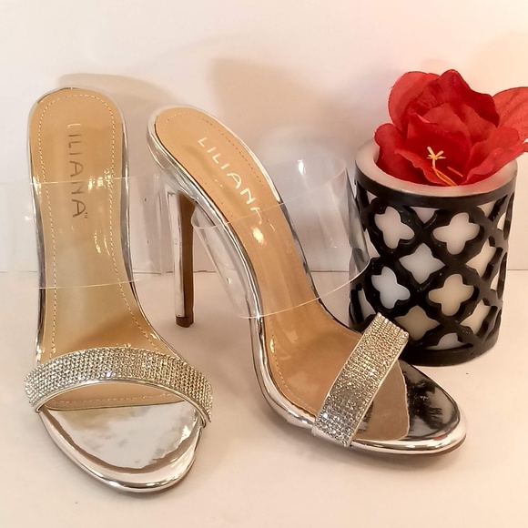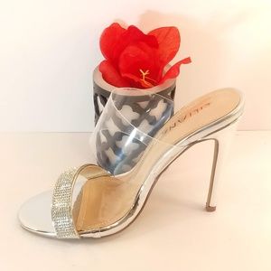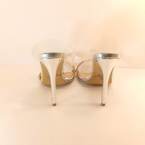 Silver open toe high heels with clear strap. New never worn. Stunning shoe for prom or wedding 👠