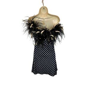 Leslie Amon Carioca Feather Trim Dot Mini Dress NWT - Size M/L