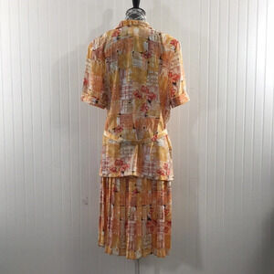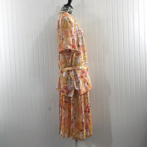 Leslie Belle Vintage 80s 90s Skirt Set Orange Floral Pleated. Short sleeve, belted. 100% Polyester. Womens size 16. Dead stock. New with original tags