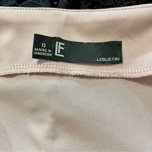 Leslie Fay Black Lace Dress Floral Sheath Round Neck Midi with Pink Slip-Size 8