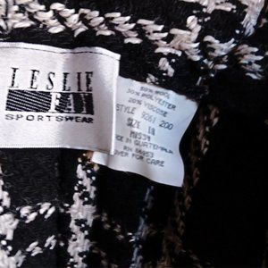 Leslie Fay Black and White Plaid Wool Skirt, Size 18 NWT.