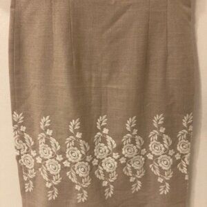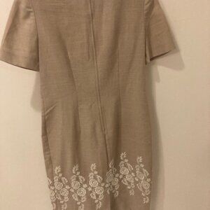This dress is timeless, classic, versatile, and elegant for its design, quality, durable fabric, and flawless stitching/embroidery of high quality. The dress is 50% polyester; 40% rayon and 10% flax. Its a beautiful fit, elegant dress.