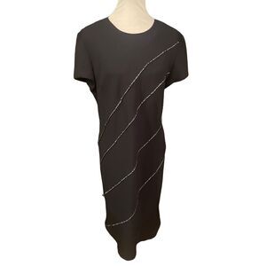 This is an Absolutely Stunning Vintage Dress Made By Leslie Fay Evenings 80’s Era. With its 1/4in Sleeve and Scoop Neck the Simplistic Design of this Dress Allows the Stunning Diagonal Sparkling Large Silver Sequin’s To Stand Out and Do Nothing But Flatter the Figure.