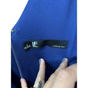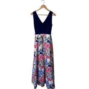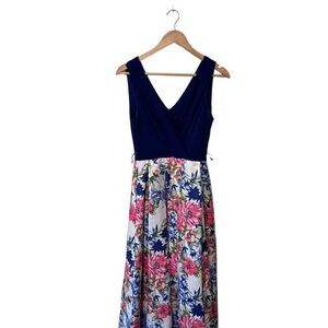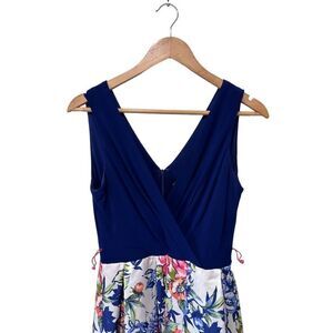 Leslie Fay Floral Sleeveless V Neck Pleated Wrap Dress Royal Blue Pink Size 6