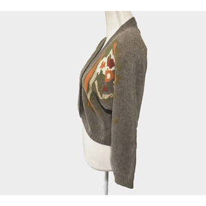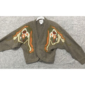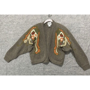 Leslie Fay Lambswool Angora Crop Cardigan Sz PS Brown Floral Open Classic