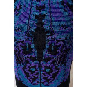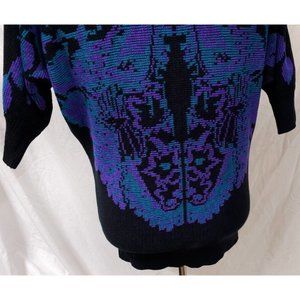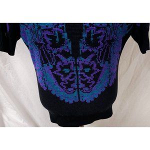Beautiful Leslie Fay Medium Black Purple Floral Aztec Tapered Body 3/4 Sleeves Sweater