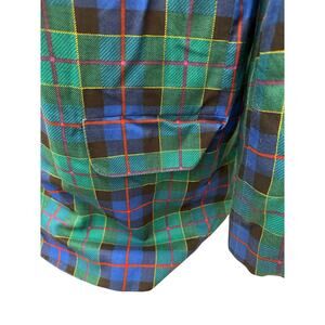 Leslie Fay Plus Size 80s Tartan Blue Green Plaid Blazer Size 18