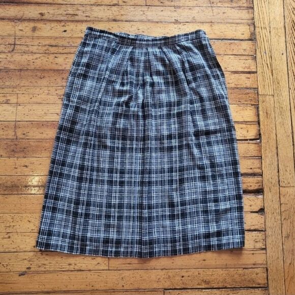 Leslie Fay Separates Vintage Plaid Midi Skirt Gray, Black and White Size 16