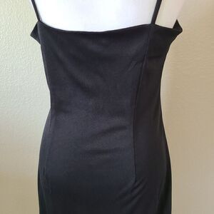 Leslie Fay black slip polyester dress perfect features spaghetti straps and a sleeveless design for a sexy and comfortable fit. The dress is lightweight and perfect for summer, fall, or spring.