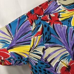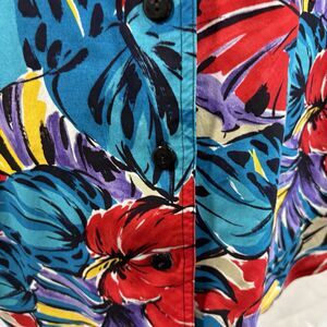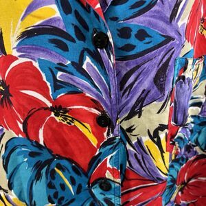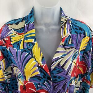 Leslie Fay Sportswear Button-Up Blouse Womens Plus 18 Floral Hawaiian Boho Retro